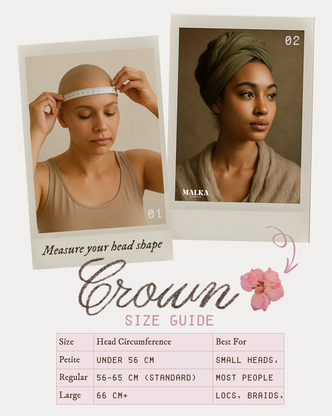 We offer three thoughtfully designed sizes to ensure your Crown feels as good as it looks—Regular, Petite, and Large. Because every head is unique, and every Queen deserves comfort.