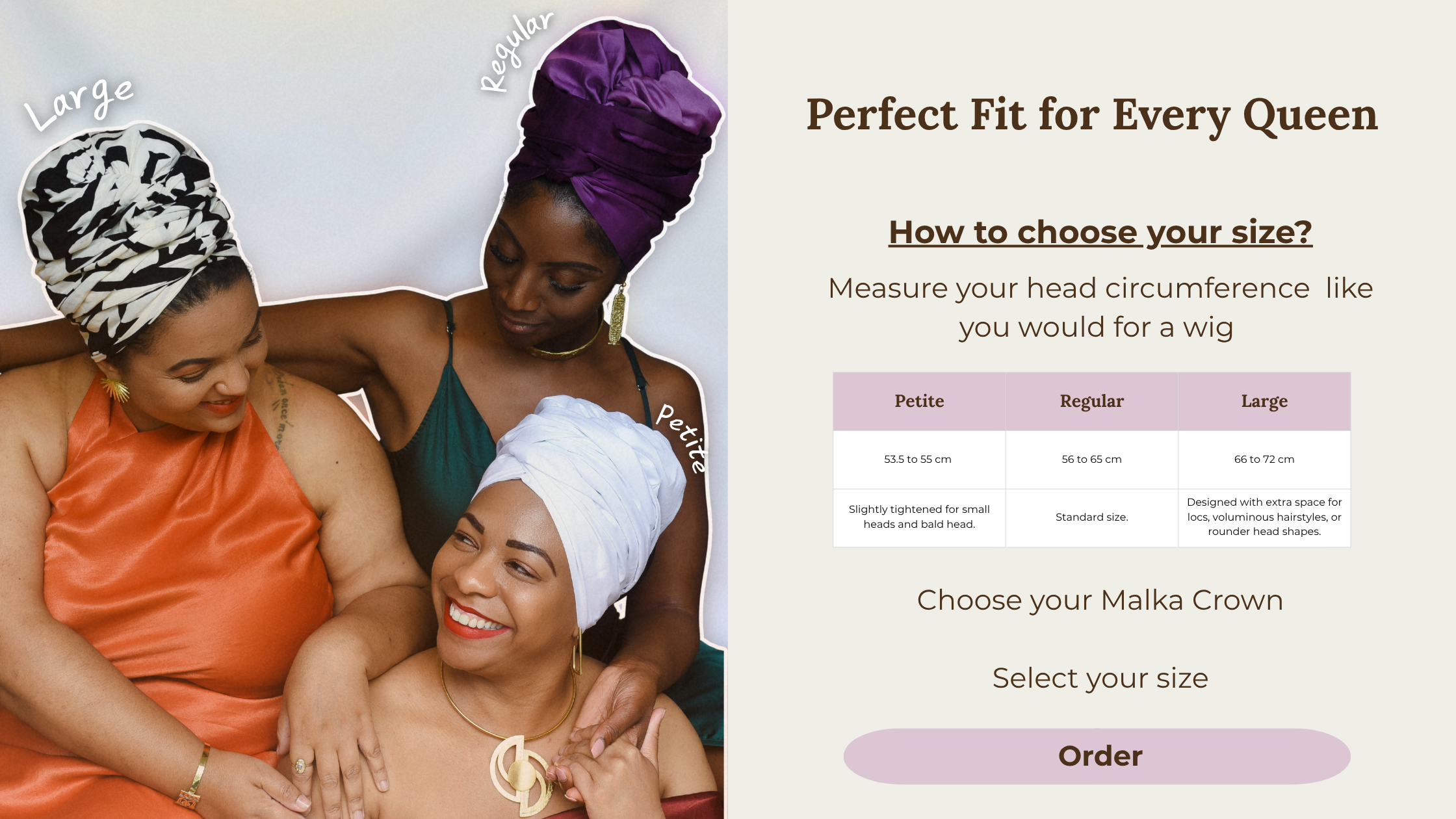 Choose from 3 bonnet sizes to accommodate your head shape: